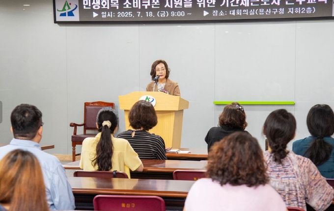 [경남도민뉴스=김완호 기자] 박희영 서울 용산구청장은 18일 구청에서 열린 ‘민생회복 소비쿠폰 지원을 위한 기간제근로자 근무교육’에서, 구민들이 원활하게 혜택을 받을 수 있도록 철저한 업무 수행을 당부했다.