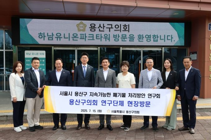 [경남도민뉴스=김완호 기자] 용산구의회 의원연구단체인 ‘용산구 지속가능한 폐기물 처리방안 연구회(대표의원 이미재)’는 지난 7월 15일 용산구에 적합한 폐기물 관리방안을 모색하고자 자원순환 선진시설인 하남시 유니온파크를 방문했다.