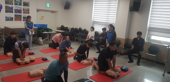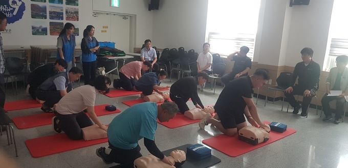 심폐소생술 교육은 대한심폐소생협회의 심폐소생술 동영상을 활용하였으며, 목격자 심폐소생술의 중요성 △현장 안전 확인 △반응 확인 △119신고 및 심장충격기 요청 △호흡상태 확인 △전화도움 심폐소생술 △가슴압박과 인공호흡 △소아 심폐소생술 △심폐소생술 전체과정 실습 △자동심장충격기 소개 및 실습 △심폐소생술과 자동심장충격기 전체 실습 등의 내용으로 프로그램이 진행됐다.