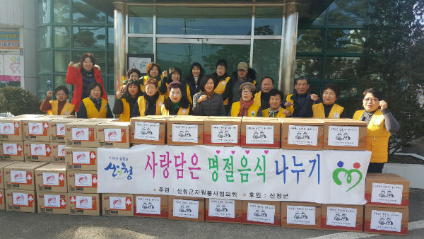 산청군자원봉사협의회는 독거노인 및 부자세대, 소년소녀가정 등 주변의 소외된 이웃들이 따뜻하게 명절을 보낼 수 있도록 2007년부터 지금까지 11년째 명절음식 나누기 행사를 추진해 왔다.