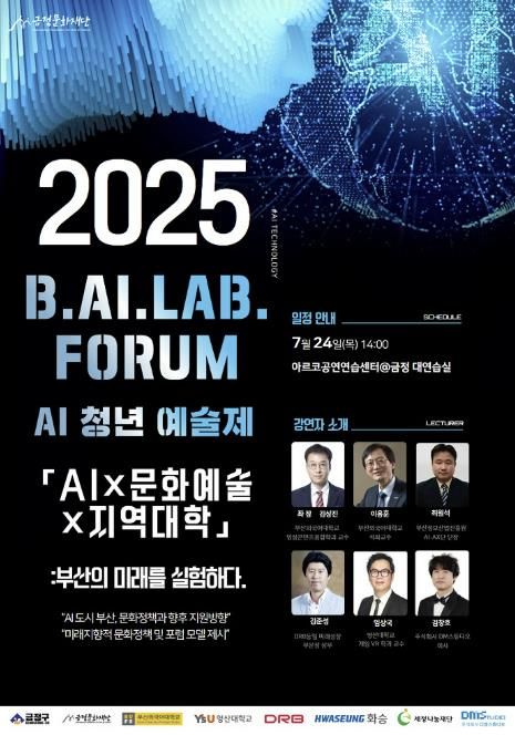 한편, ‘2025 B.AI.LAB. FORUM’은 차세대 청년문화 활성화 사업인 ‘AI 청년 예술제: 넥스트 웨이브’의 첫 번째 행사로, 향후 AI 창작 워크숍, AI 청년기획단 운영, 결과공유회 등 다양한 프로그램으로 이어질 예정이다.