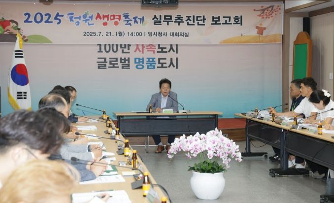 [경남도민뉴스=박만수 기자] 청원생명축제추진위원회는 21일 2025 청원생명축제의 성공적인 개최를 위해 시 산하 관계 부서와의 협업 체계를 강화하고, 분야별 준비상황을 점검하기 위해 실무추진단 보고회를 개최했다.