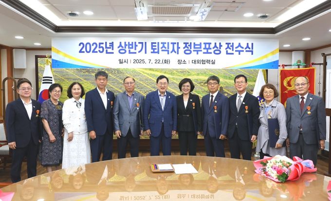 [경남도민뉴스=오창경 기자] 경주시는 22일 오전 청사內 대외협력실에서 ‘2025년 상반기 퇴직자 정부포상 전수식’을 열고, 오랜 기간 지역 행정 발전에 헌신한 퇴직 공무원 10명에게 정부포상을 전수했다.