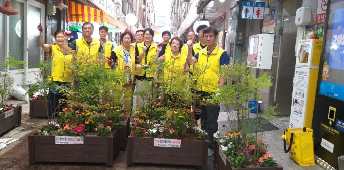 [경남도민뉴스=김채연 기자] 해운대구 반송큰시장상인회(회장 박용만)는 16일 반송큰시장 고객지원센터 앞 화단에 꽃과 나무를 심었다.