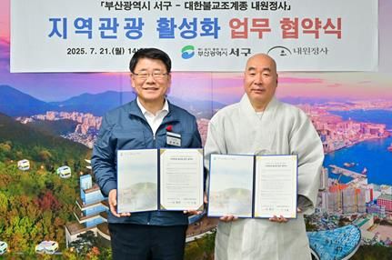 [경남도민뉴스=김채연 기자] 부산 서구는 지역 관광 활성화 및 지역 문화복지 증진을 위해 지난 21일 대한불교조계종 내원정사(주지 지일)와 업무협약을 체결했다.