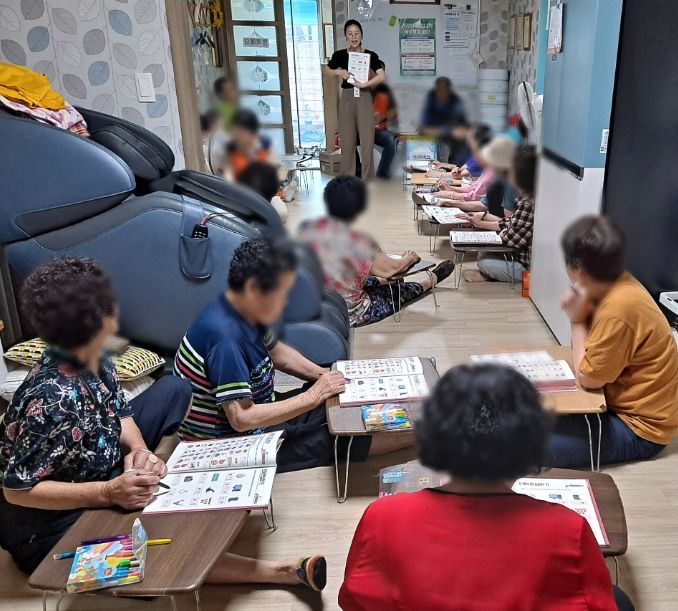 해당 마을 주민의 요구도가 높은 치매예방교실은 지난 2일부터 8월 8일까지 매주 수요일, 금요일 총 12회기로 운영되고 있으며, 60세 이상 지역 주민을 대상으로 치매예방체조, 공예 활동, 인지 훈련 학습지, 보건교육 등 인지 자극 및 소근육 발달에 도움이 되는 치매 예방 프로그램을 운영하고 있다.