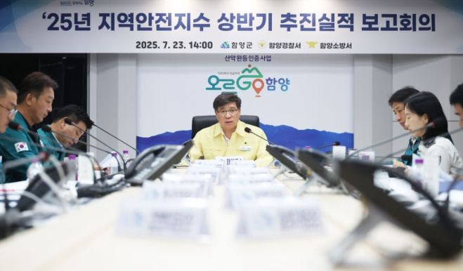 [경남도민뉴스=장광동 기자] 함양군은 7월 23일 군청 재난종합상황실에서 ‘2025년 지역안전지수 상반기 추진실적 및 하반기 추진계획 보고회’를 열고, 군민 체감형 안전 정책 추진을 위한 실적과 향후 방향을 점검했다.