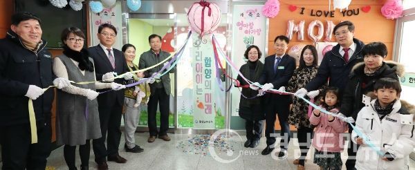 강현출 부군수는 개소식 축사를 통해 “사랑스런 우리 아이들에게 희망찬 미래를 열어주고 행복한 세상을 만들어주기 위해서는 우리 어른들의 적극적인 관심과 노력이 필요하다”고 강조하고 “오늘 개소되는 엄마랑 아가랑 행복한 쉼터가 저출산 극복을 위한 또 하나의 계기가 되기를 바란다”고 말했다