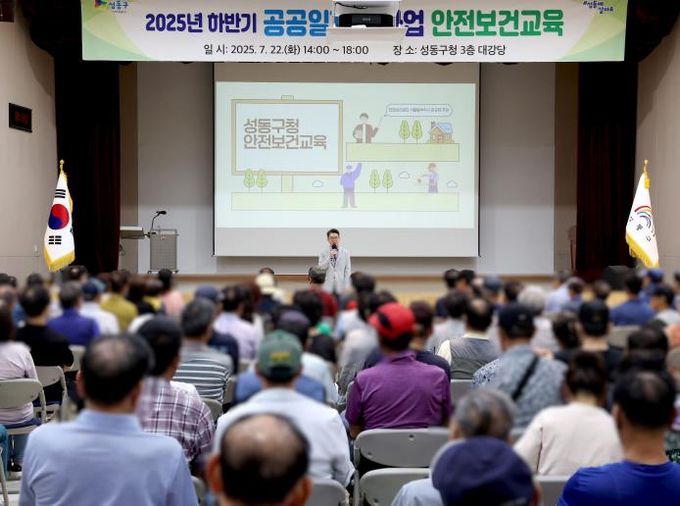 [경남도민뉴스=윤장희 기자] 서울 성동구가 지난 22일 성동구청 3층 대강당에서 '2025년 하반기 공공일자리사업' 참여자를 대상으로 산업재해 예방과 건강한 근무환경 조성을 위해 집합 안전보건교육을 실시했다고 밝혔다.