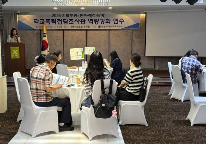 [경남도민뉴스=박만수 기자] 충주교육지원청은 7월 25일에 충주 더 베이스호텔에서 2025-2차 북부권(충주, 제천, 단양) 학교폭력전담조사관 역량강화 연수를 실시했다.