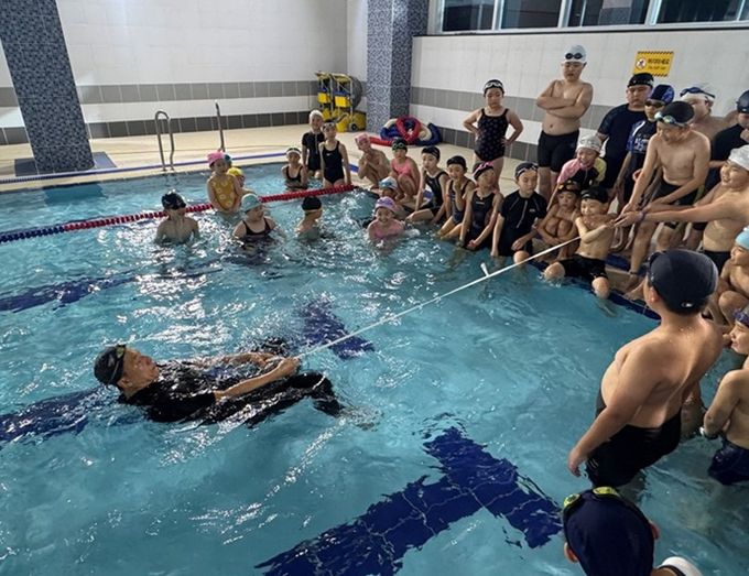 이번 대응훈련은 어린이수영프로그램 회원대상으로 이론교육뿐만 아니라 실제 상황을 가정한 익수자 구조법(간이구조법, 구조기구 활용법, 이동수단 구조, 직접구조), 물놀이 사고 심정지 환자 발생시 대처방법(심폐소생술(CPR), 자동심장충격기(AED)사용법, 구명조끼 착용법 등)실습 위주의 내용으로 진행됐다.