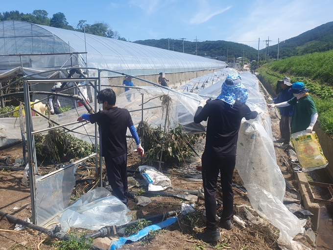 이번 긴급복구 지원활동은 지난 16일부터 20일까지 경남 합천군 삼가면 일대에 내린 기록적인 집중호우(총강수량 699㎜)로 피해를 입은 농가에 긴급복구 지원이 필요하다는 지역 농협 관계자의 요청을 받아 보호관찰소 담당자가 현장답사 후 경남 합천군 삼가면 외토리 소재 폭우 피해 농가를 찾아가 비닐하우스 등 시설물과 농작물 피해 복구 지원을 하였다.