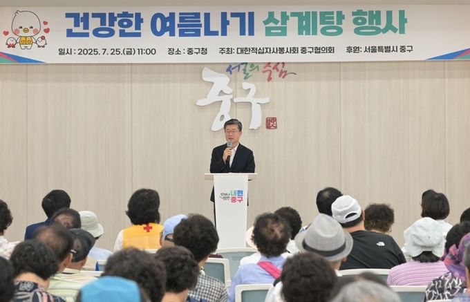 [경남도민뉴스=김완호 기자] 서울 중구가 대한적십자사봉사회 중구협의회와 함께, 폭염 속 어르신들의 기력 회복을 위한‘건강한 여름나기 삼계탕 행사’를 열었다. 지난 25일 점심, 어르신 200여 명을 중구청에 초대해 삼계탕 나눔 행사를 진행한 것이다.