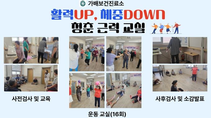[경남도민뉴스=김부경 기자] 가배보건진료소는 지난 5월부터 7월까지 지역주민의 건강한 생활 습관 형성과 만성질환 예방을 위한 특성화 사업 '활력 UP! 체중 DOWN! 청춘 근력 교실'을 총 16회에 걸쳐 운영하며 219명이 참여하는 등 큰 호응 속에 성공적으로 마무리됐다고 밝혔다.