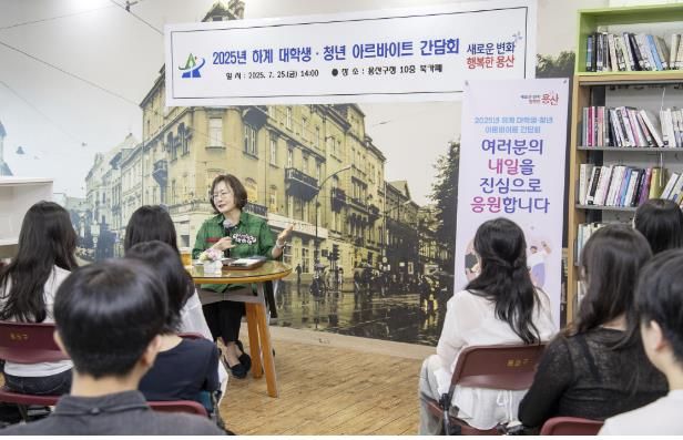 [경남도민뉴스=김완호 기자] 박희영 용산구청장은 지난 25일 용산구청 북카페에서 열린 ‘대학생·청년 아르바이트 간담회’에 참석해, 한 달간의 근무를 마친 40명의 대학생·청년들과 소통의 시간을 가졌다.