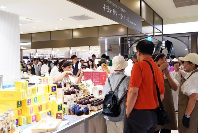 [경남도민뉴스=표재민 기자] 홍천군은 홍천군 중소기업의 우수제품을 널리 알리고, 도시 소비자와의 직거래 기회를 확대하기 위해 지난 25일부터 오는 31일까지 7일간 서울 롯데백화점 본점 지하 1층에서 ‘2025년 청정의 숨결 강원특별자치도, 홍천군 웰빙 식품 기획전’을 진행한다.