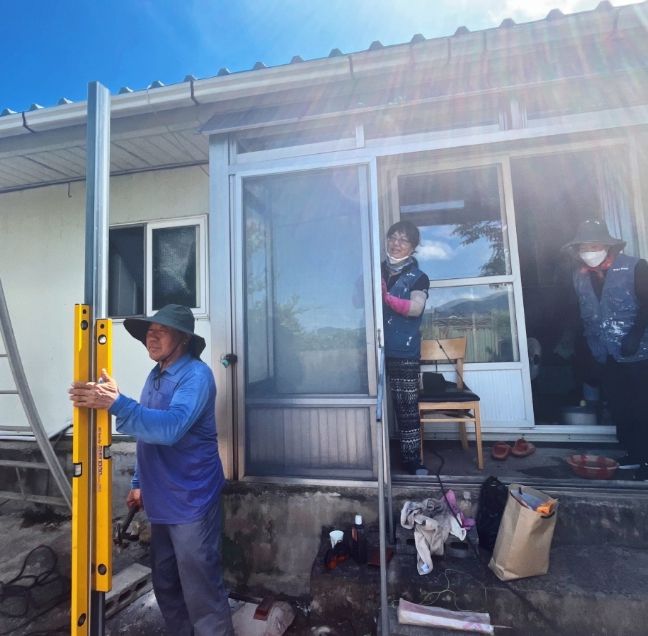 이번 활동은 고령 장애인의 주거 안정과 생활 편의 향상을 위해 마련됐다. 단원들은 주택 현관에 비가림막을 설치하고 집 안팎을 청소해 쾌적하고 안전한 주거환경 조성에 힘썼다.