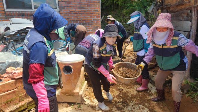 이날 여성민방위기동대원 20여 명은 산청군 차황면 우사마을 일대 침수 주택을 찾아 토사 제거, 가재도구 정리, 마을 주변 환경 정비 등 현장 중심의 복구 활동에 힘을 보탰다.