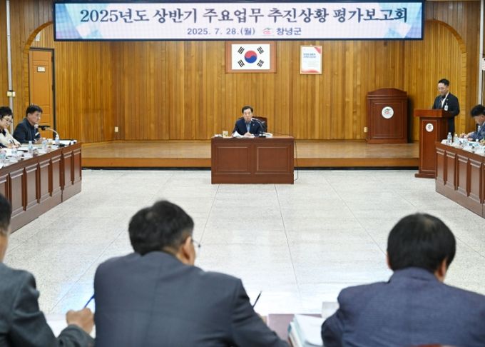 [경남도민뉴스=김병현 기자] 창녕군은 지난 28일 군청 대회의실에서 성낙인 군수 주재로 간부공무원이 참석한 가운데 ‘2025년 상반기 주요업무 추진상황 평가보고회’를 개최했다.