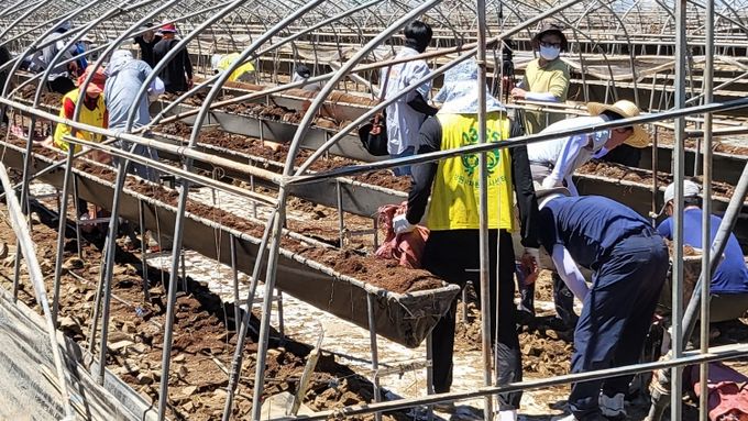자발적으로 참여한 40여 명의 자원봉사자들은 신안면 침수 피해 하우스를 방문해 토사 제거와 바닥 정비 등의 복구 작업에 정성을 다해 임했다.