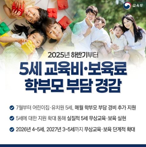 [경남도민뉴스=백형찬 기자] ■ 2025년 하반기부터 5세 교육비·보육료 학부모 부담 경감