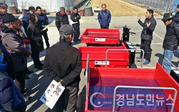 (함양/최병일) = 여성과 고령 농업인이 날로 늘어나는 가운데 함양군농업기술센터에서 신체부담을 줄이면서 농업효율을 높이는 편이장비 지원사업을 펼쳐 군민소득 3만불 달성에 기여할 전망이다.