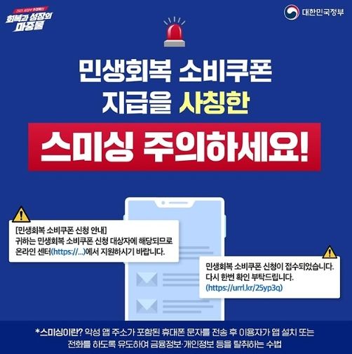 [경남도민뉴스=백형찬 기자] 민생회복 소비쿠폰 지급을 사칭한 스미싱 주의하세요!