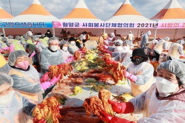 [경남도민뉴스] 함양군사회봉사단체협의회(회장 박동서, 임순남)는 1일 오후 공설운동장에서 봉사단체 회원들이 참석한 가운데 2021년 사랑의 김장나눔 봉사를 실시하였다.