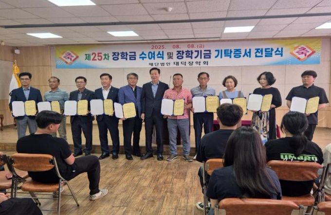[경남도민뉴스=최인태 기자] 장흥군 대덕읍 대덕장학회는 8일 대덕읍행정복지센터에서 ‘2025년 제25차 장학금 수여식 및 장학기금 기탁증서 전달식’을 개최했다.
