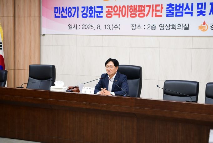 [경남도민뉴스=김용욱 기자] 강화군은 13일, 군민과의 약속인 공약 이행 상황을 객관적으로 점검하기 위해 민간 자문기구인 ‘민선 8기 공약이행평가단’ 출범식을 개최하고 제1차 회의를 진행했다.