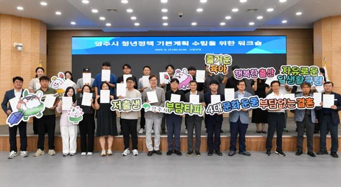 워크숍에는 영주시장 권한대행을 비롯해 시의원, 청년정책위원회 및 협의체 위원, 지역 대학 관계자 등 30여 명이 참석해 ‘저출생 부담 타파 4대 문화운동’ 서약서에 서명하며 실천 의지를 다졌다.
