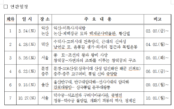 3월 참가자 모집은 오는 3월 2일 오전 9시부터 거창군평생교육센터 홈페이지를 통해 접수가능하며, 초등학교이상 학생을 둔 가족이면 누구나 참여할 수 있다. 한 가족 4명 이내로 신청가능하며 선착순 접수순으로 참가자가 선발된다. 이번 역사탐방은 전북 익산과 논산일대에서 백제 군사 박물관과 미륵사지석탑, 황산벌을 방문하여 교과서 속의 재미있는 역사이야기를 전문 강사와 함께 공부할 예정이다.
