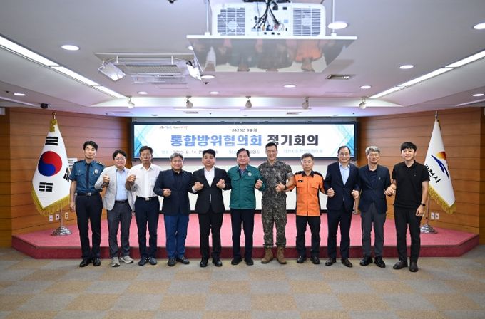 [경남도민뉴스=최민숙 기자] 김천시는 8월 14일 오후 3시, 시청 2층 회의실에서 ‘2025년 3분기 통합방위협의회의’를 개최했다. 이번 회의에는 의장인 배낙호 김천시장을 비롯하여 군·경·소방·교육·민간기관 등의 지역 안보 유관기관장인 위원 11명이 한자리에 모였다.