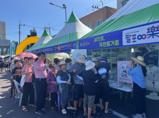 이번 홍보부스에서는 삼천포 구항, 대방 굴항, 팔포팔락 업타운 도시재생사업에 대하여 소개하고, 추억의 뽑기 이벤트를 통해 지역특산품인 건어물을 포함 5종 총 736점의 홍보 물품을 배부해 지역 주민들의 관심과 참여를 유도했다.