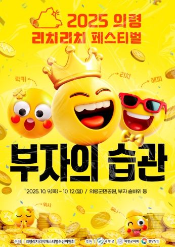 한편 의령군은 2025년 리치리치페스티벌 축제 슬로건을 '부자의 습관'으로 정했다. 지난해 '부자의 법칙'에 이어 부자로 한 걸음 더 나아가기 위한 실천적 메시지 ‘7가지’가 공개된다.