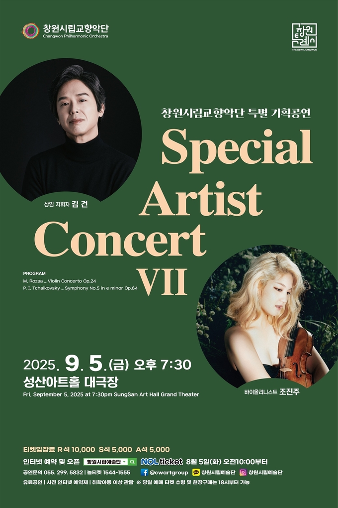 정양숙 문화관광체육국장은 “두 번째 유료 공연인 이번 무대는 국내 최정상 바이올리니스트 조진주와 함께하는 만큼 시민들에게 깊은 감동과 예술적 울림을 선사할 것”이라며 “앞으로도 창원시향이 시민과 함께 성장하는 교향악단이 될 수 있도록 많은 관심과 성원을 부탁드린다”고 전했다.