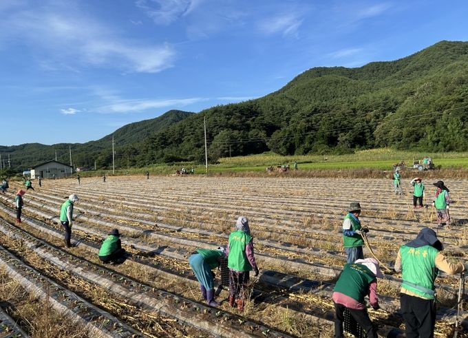이날 행사엔 새마을회 회원 50여 명이 참여해 창수면 인근 밭 1,000평가량에 모종을 심었다.