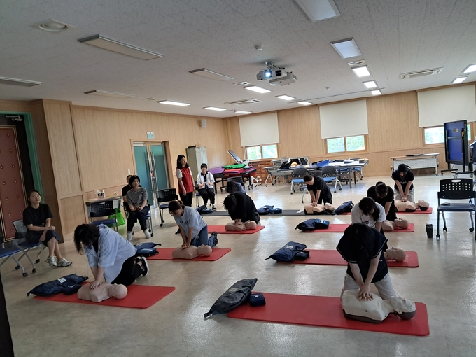 심폐소생술 등 응급처치 교육은 △심폐소생술의 중요성 △성인 기본 소생술 △소아 및 영아 기본 소생술 △자동심장충격기(AED) 이론 및 실습 △이물질에 의한 기도폐쇄 환자의 응급처치 △성인심폐소생술 및 자동심장충격기와 영아심폐소생술 술기평가로 진행됐다.