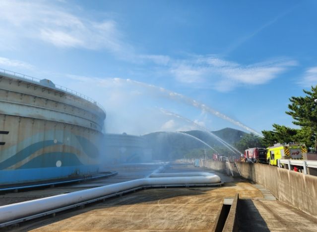 [경남도민뉴스=구인애 기자] 경상남도 소방본부(본부장 이동원)는 28일 거제시 일운면 소재 한국석유공사 석유비축기지에서 지진 발생에 따른 원유 누출과 화재 대응을 위한 통합 대응훈련을 성공적으로 실시했다고 밝혔다.
