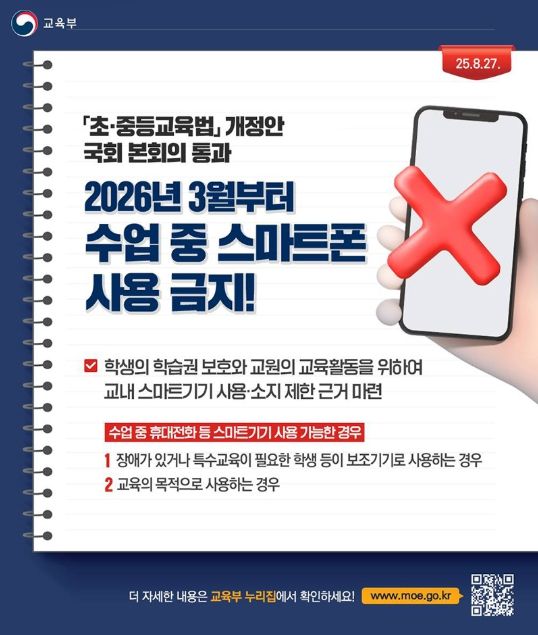 [경남도민뉴스=백형찬 기자] 학생의 학습권 보호와 교원의 교육활동을 위하여 교내 스마트기기 사용·소지 제한 근거 마련.