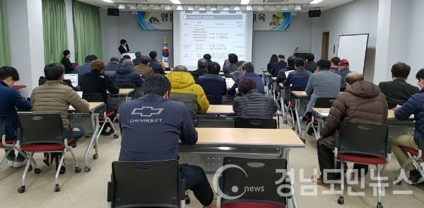 이날 경남도 동물위생시험소 북부지소 방역담당자가 강사로 나서 항체양성률 제고 등 현장방역관리 강화를 위한 개정 고시내용 설명과 백신접종, 소독, 차단방역 요령 등에 대해 교육했다.