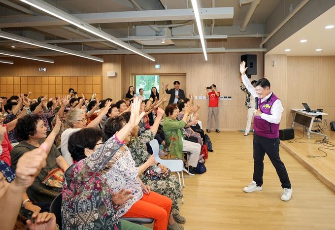 이 구청장은 2층 동백홀 강당의 노래교실을 참관한 뒤, 5층 동백레스토랑(경로식당)에서 회원들과 함께 점심을 나누며 생활 속 불편 사항과 건의사항을 청취했다.