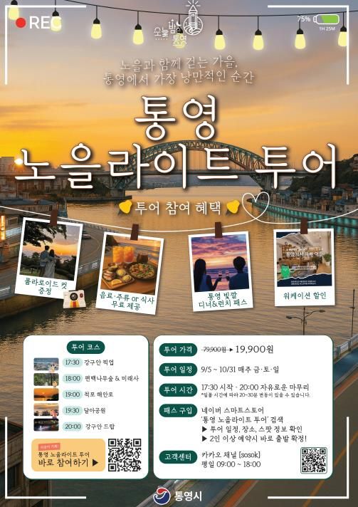 이번 여행상품은 야간관광특화도시 조성사업의 일환으로 기획됐으며, 추석 연휴를 포함한 가을철 통영을 찾는 관광객들에게 통영의 아름다운 밤을 알리고 특별한 야간 체험을 제공할 예정이다.