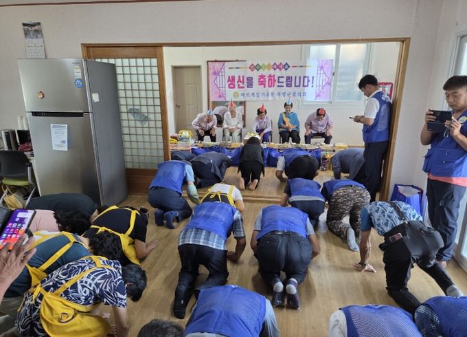 [경남도민뉴스=이상민 기자] 바르게살기운동 의령군협의회는 여성봉사회, 유곡면위원회와 함께 지난 27일 유곡면 구송산마을회관에서 주민 50여명이 참석한 ‘생신상 나눔’ 행사를 열었다고 밝혔다. 이번 행사는 80세 이상 홀로 생활하시는 어르신 5분의 생신을 축하하기 위해 마련됐다.