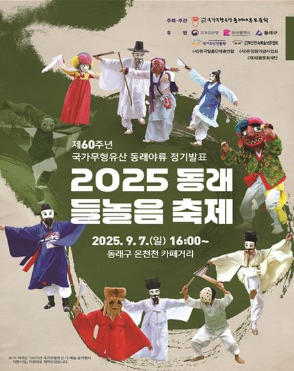 [경남도민뉴스=신석주 기자] 부산시는 오늘(7일) 오후 4시 온천천 카페거리 공연장에서 제60주년 동래야류 정기공연 '동래 들놀음 축제'를 개최한다고 밝혔다.