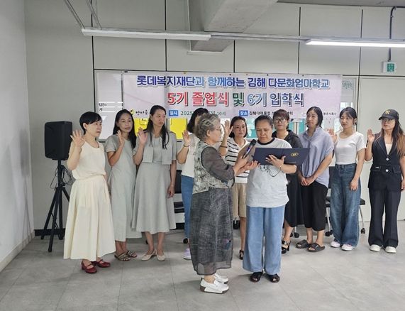 [경남도민뉴스=최미정 기자] 김해시는 지난 7일 오전 10시 김해다어울림생활문화센터 4층에서 다문화가족 엄마들의 교육 역량 강화를 위한 ‘김해다문화엄마학교’의 5기 졸업식과 6기 입학식이 열렸다고 8일 밝혔다.