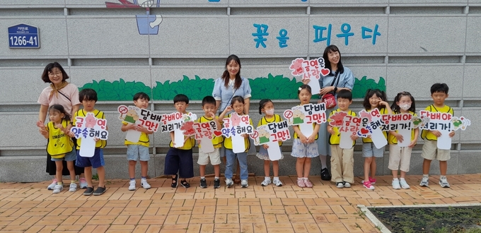 이날 행사에는 유아와 선생님 등 20여 명이 참석했으며, 체력단련실과 노인복지관·장애인복지관 로비 3곳에서 어르신과 이용객들에게 흡연의 해로움과 금연의 중요성에 대한 홍보활동을 진행했다.
