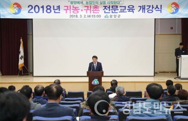 함양군은 2일 오후 3시 농업기술센터 농업인교육관에서 강현출 부군수를 비롯해 교육생 100명 등 120여명이 참여한 가운데 2018년 귀농·귀촌 전문교육 개강식을 가졌다.