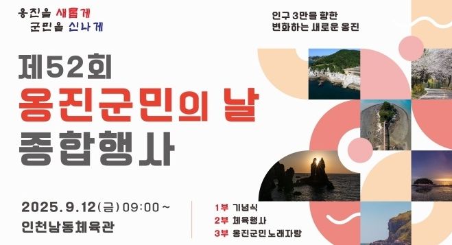 [경남도민뉴스=김용욱 기자] 옹진군은 오는 12일에 인천 남동체육관에서 ‘제52회 옹진군민의 날 기념 종합행사’를 개최한다고 밝혔다.