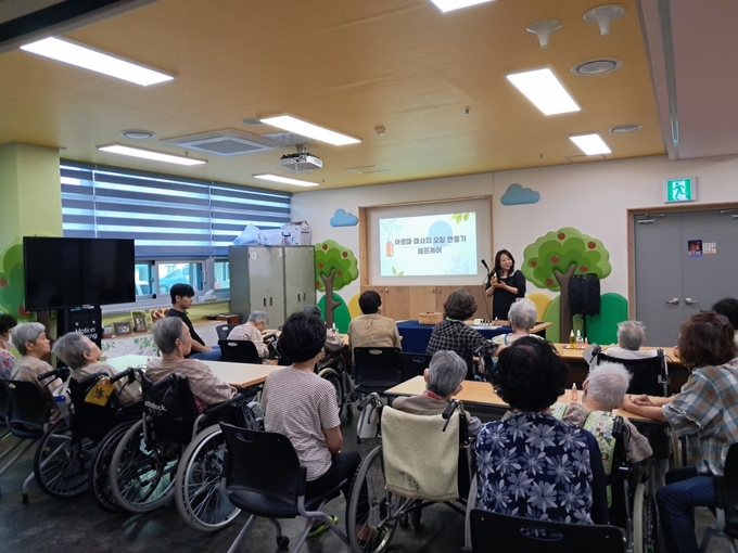 참여한 어르신들은 “수업을 시작할 때부터 좋은 아로마 향기를 맡아서 기분이 좋아지고 행복했다”며 프로그램 참여에 만족감을 나타냈다.